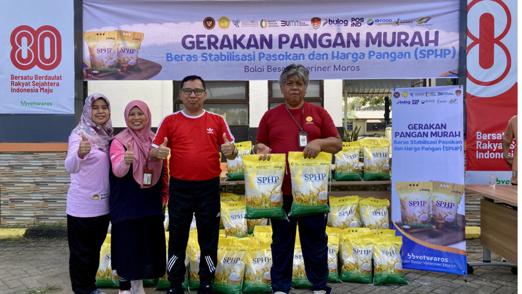 Maros — Balai Besar Veteriner (BBVet) Maros pada 8 Agustus 2025 menggelar Gerakan Pangan Murah (GPM) sebagai upaya konkret menjaga keterjangkauan harga beras di Indonesia. Dalam kegiatan ini, BBVet Maros menjual beras SPHP (Stabilisasi Pasokan dan Harga Pangan) kemasan 5 kg seharga Rp 60.000, dengan batas maksimal dua kemasan untuk setiap pemegang KTP. Antusiasme pembeli yang begitu tinggi membuat seluruh stok ludes sebelum tengah hari. BBVet Maros akan membuka lapak kembali segera setelah pasokan berikutnya tiba, dan jadwalnya akan kami umumkan melalui kanal resmi media sosial Instagram, Facebook, dan X