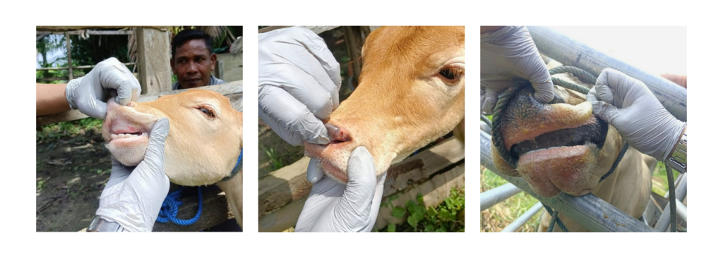Laporan ini bermula dari informasi yang diterima petugas kesehatan hewan Dinas Pertanian Kabupaten Bolaang Mongondow Utara dari peternak lokal. Peternak melaporkan adanya sapi dengan gejala yang mencurigakan, seperti lepuh di hidung dan mulut, hipersalivasi, lesi pada mulut (lidah, gusi, bibir), dan lesi pada tracak yang menyebabkan sapi mengalami kepincangan. Setelah menerima laporan ini, petugas kesehatan hewan segera melaporkan kasus tersebut ke iSIKHNAS, yang kemudian ditindaklanjuti oleh Kementerian Pertanian melalui BBVet Maros.