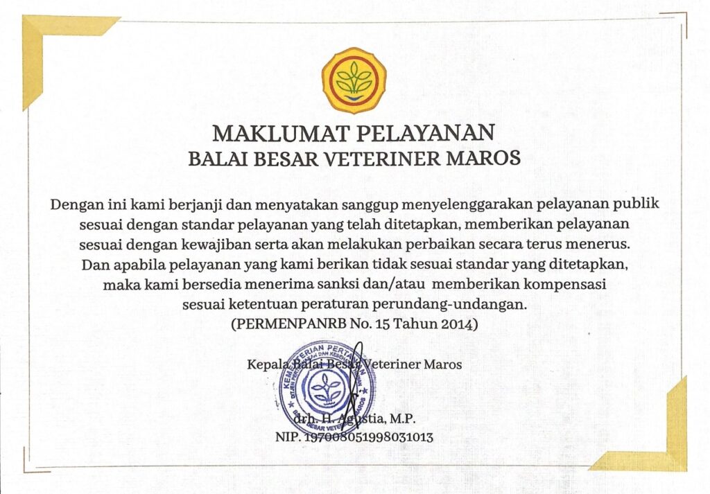 Maklumat Pelayanan Informasi Publik Balai Besar Veteriner Maros